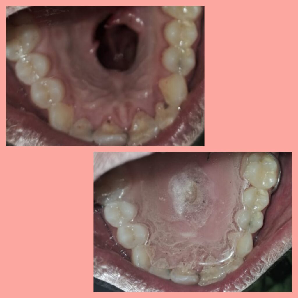 Oro-antral fistula of Patient covered with maxillary obturator for speech and function